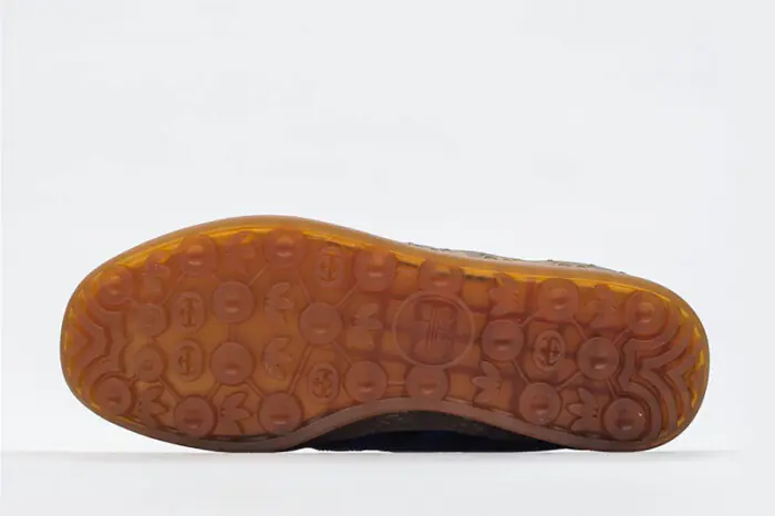 Emblematic House’s motifs mix with those of the historic sportswear brand adidas. The collection sees both heritages encoded in a trio of lines, where adidas and Gucci combine archival emblems. The House pulls memories from the ‘80s and ‘90s for a collection that is both nostalgia-driven and contemporary. These Gazelle sneakers have a Trefoil print and stripes.