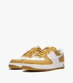 Named after the Greek goddess of victory, Nike’s signature swoosh logo is considered to be one of the most iconic, adorned across the label’s clothing, footwear and accessories. These white and wheat yellow Air Force 1 sneakers are crafted from leather and feature a round toe, a flat rubber sole, a signature Nike swoosh, a panelled colour block design, a lace-up front fastening, a logo patch at the tongue, branded heel counter, side logo branding and tonal stitching. These styles are supplied by a premium sneaker and street wear marketplace. Stocking only the most sought-after footwear and clothing, they source and curate some of the most hard-to-find items from around the world.
