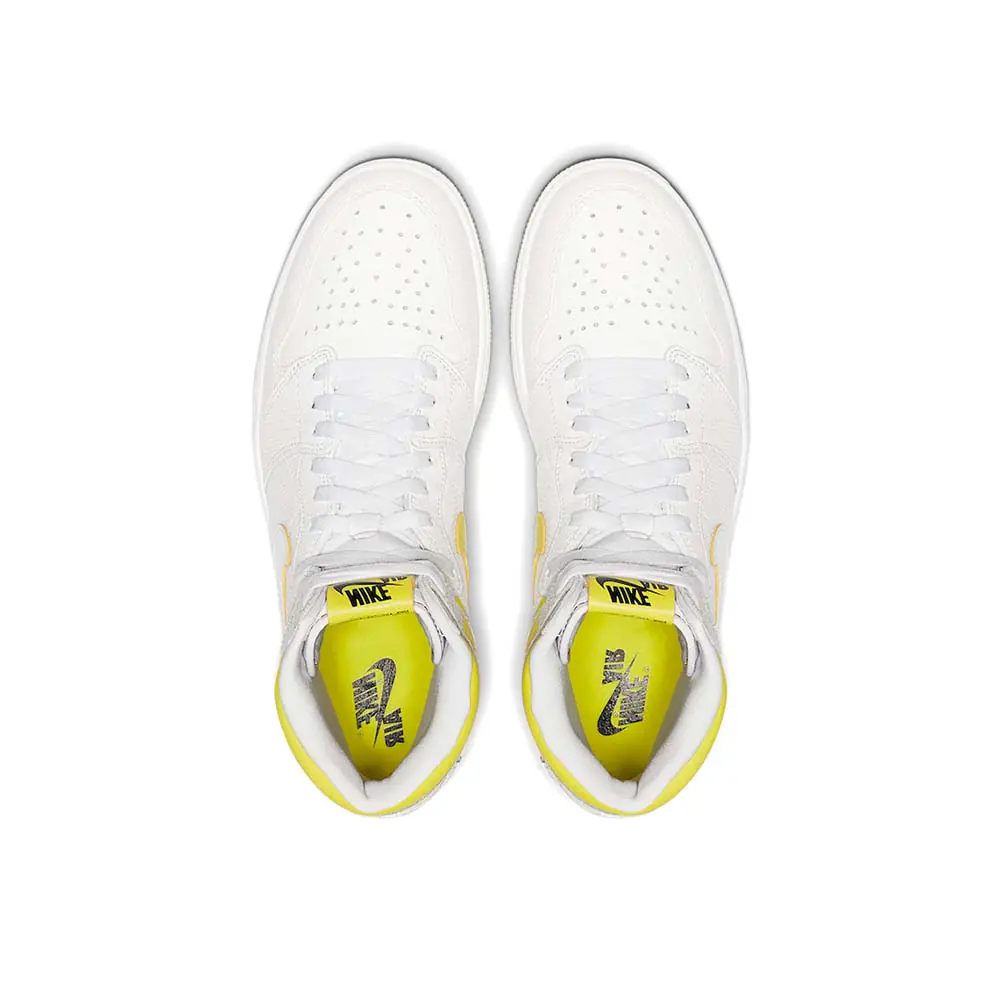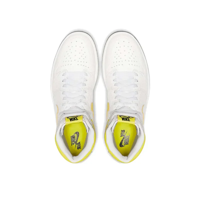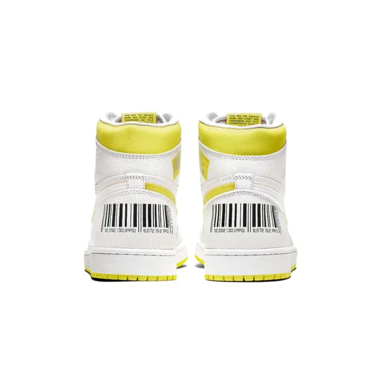 Jordan Brand is set to release a brand new Air Jordan 1 dubbed, “First Class Flight” that is inspired by their shipping department.Dressed in a White, Dynamic Yellow, and Black color scheme. This Air Jordan 1 features a White perforated leather upper highlighted with Yellow contrasting accents throughout. Black is used on the special details like UPC barcodes stamped on the lateral ankle – which reads “First Class Flight” and heel, a “23” recycling symbol, along with Michael Jordan’s signature.