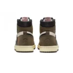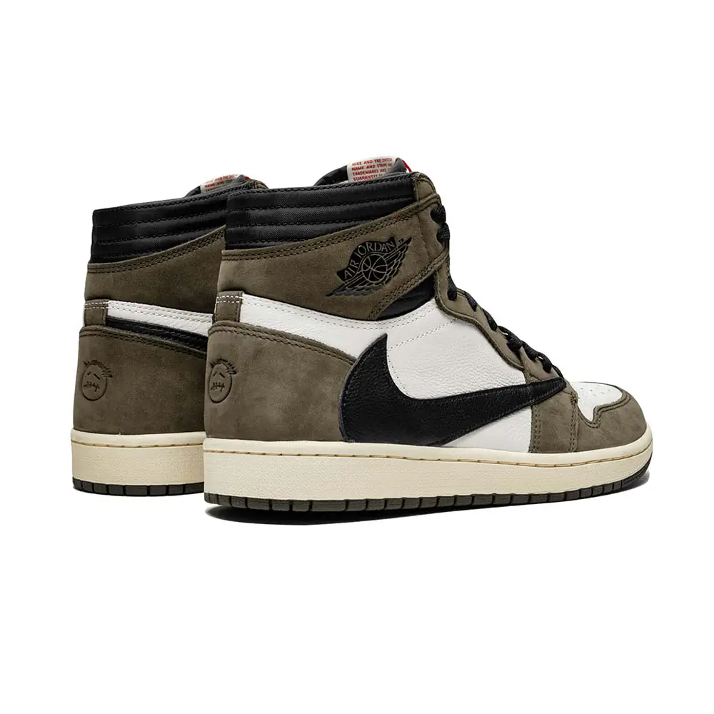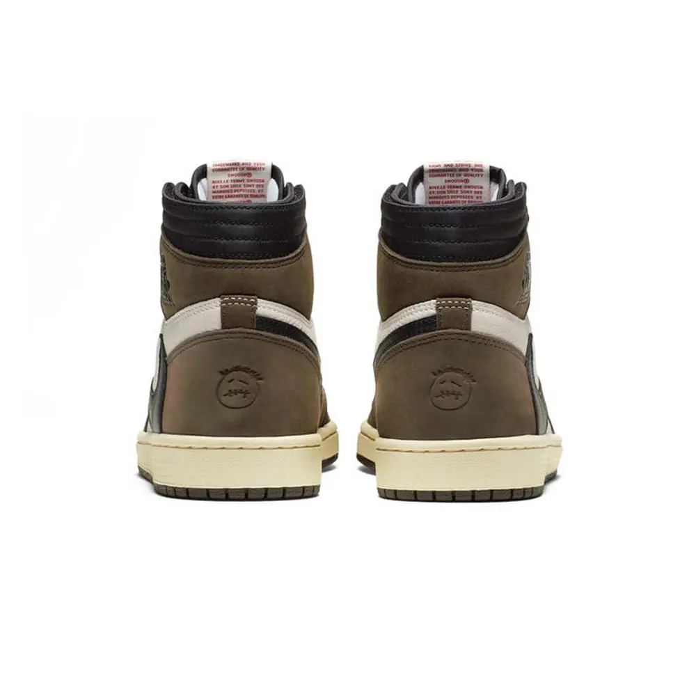 The Travis Scott x Air Jordan 1 High OG is the limited edition collaboration from the rap superstar and Jordan Brand on the iconic silhouette that features a major twist. One look at the Travis Scott x Air Jordan 1 and you’ll notice the backwards Swoosh across the upper, a first for the legendary silhouette. Travis Scott’s Air Jordan 1 also features a premium construction in Sail leather and Dark Mocha nubuck with black accents. The Jordan 1 is further modified with a padded nylon collar that has a hidden stash pocket. Each pair is completed with Scott’s “face” logo embossed on the heels and a “Cactus Jack” logo on the right insole.