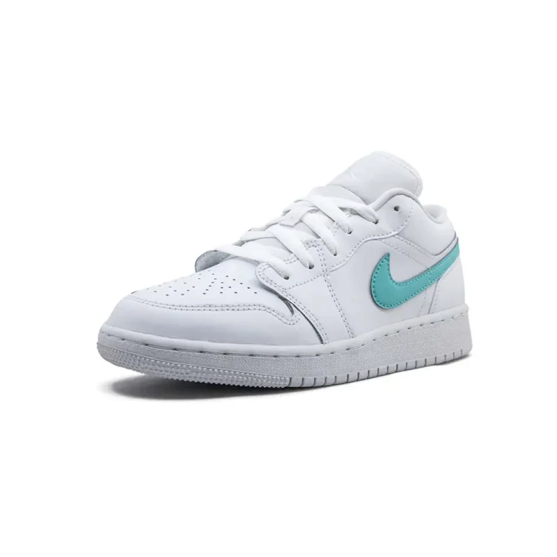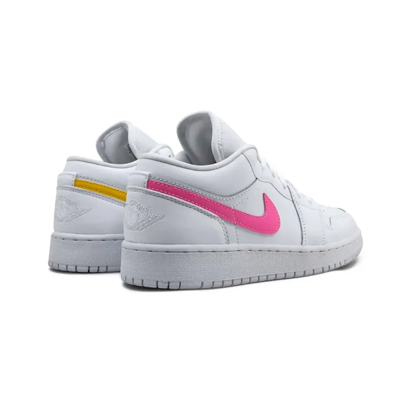 Made exclusively for big kids, the Air Jordan 1 Low GS ‘White Neon’ updates the original 1985 silhouette as a minimalist low-top with vibrant, asymmetrical accents. The latter takes the form of Nike Swooshes in teal, yellow, neon green and pink, each standing out against a crisp white leather backdrop. Additional branding elements include an embroidered white Jumpman atop the tongue, along with a Jordan Wings logo on the heel.