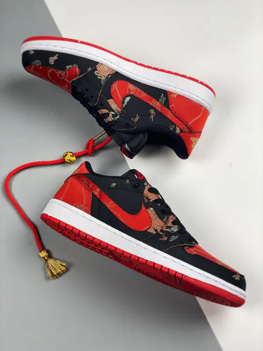 Air Jordan 1 Low OG ” CNY” Black/University Red-Metallic Gold-White