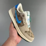 Virgil Abloh never failed to impress the crowd as he collaborated with Gucci and Jordan Brand. Air Jordan 1 Low Slip x Gucci sneakers showcase high-ankle pair with the classic Air Jordan 1 Low Slip x Gucci leather bases. It is also accented with brown perforated toe and mid-panel with black overlays. The sneakers include light brown Nike Swooshes on the side. Additionally, these shoes also reveal a Gucci pattern print on the shoe. These Gucci sneakers are completed with brown rubber outsoles.