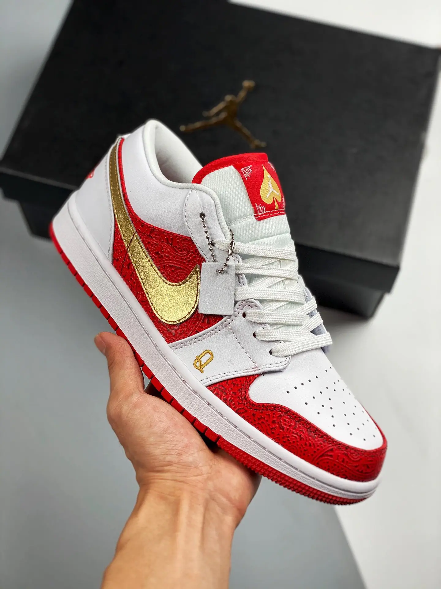 Air Jordan 1 Low ” Spades” White Red Gold