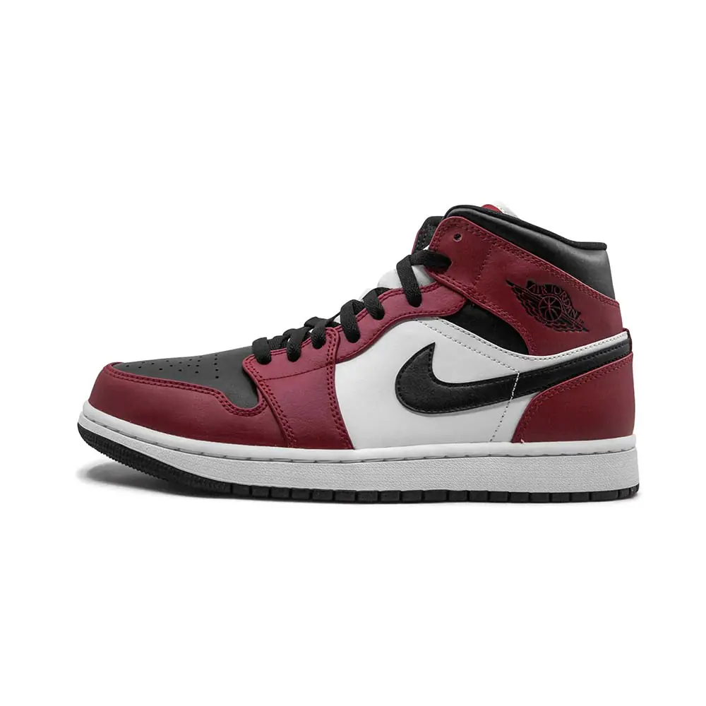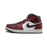 The Air Jordan 1 Mid ‘Chicago Black Toe’ draws inspiration from the sneaker’s 1985 roots. The distinctive color blocking is reminiscent of the OG ‘Chicago’ colorway, applied to a mid-top silhouette and revised with a black finish on the perforated toe box. Jumpman branding adorns the woven tag stitched onto the padded white nylon tongue, while a classic Jordan Wings logo is stamped in black on the lateral collar flap.