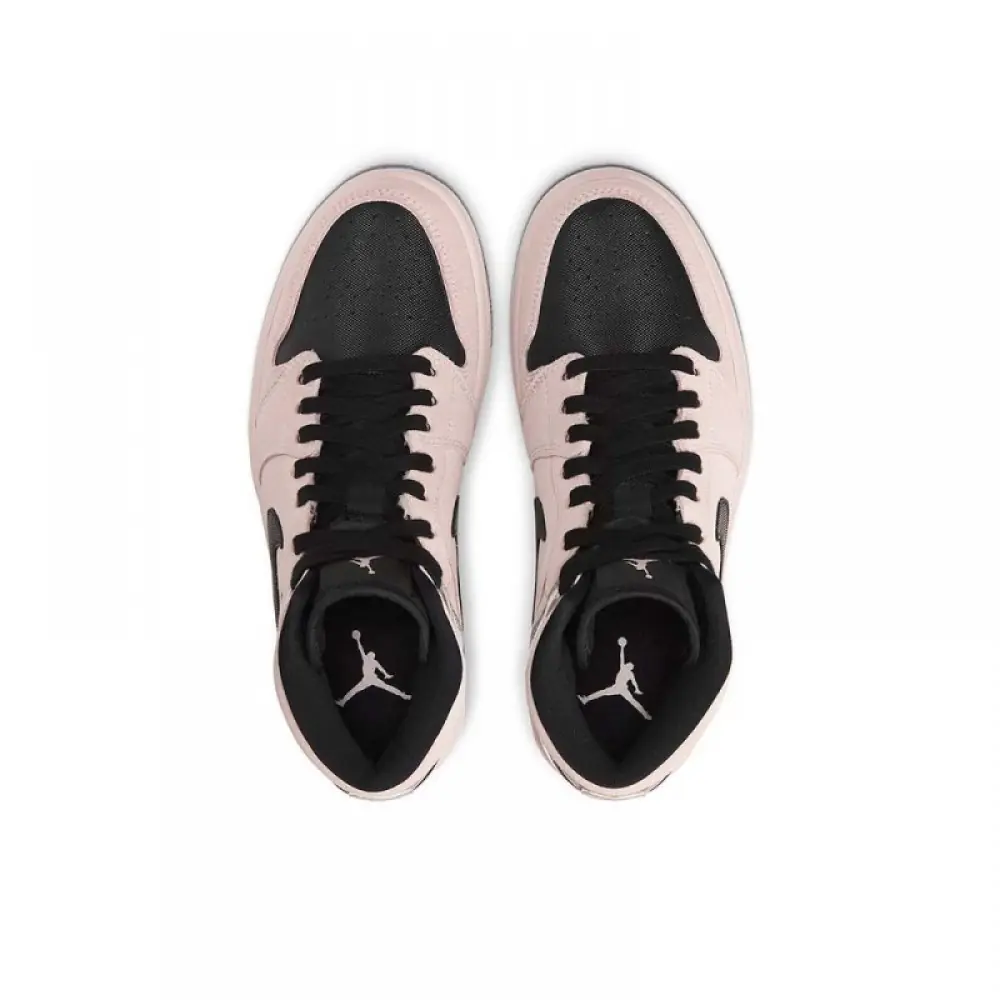 The Women’s Air Jordan 1 Mid “Iridescent” is a flashy look for the women’s sizing of Michael Jordan’s first signature shoe in mid-top form. The unique appearance of the release can be attributed to the iridescent leather collar and heel which emits a reflective shine. Barely Rose suede covers the mid-panel, toe cap, and collar. A dotted black nylon Swoosh contrasts the mid-panel. Additional black nylon appears on the perforated toe and tongue. Jordan Brand finishes off the midsole in a tonal hue that syncs with the pale pink suede base of the shoe.
