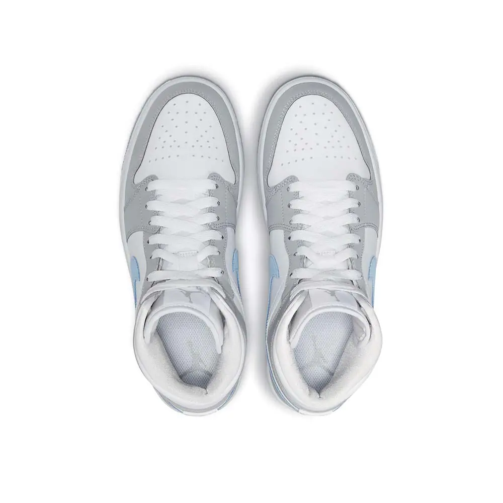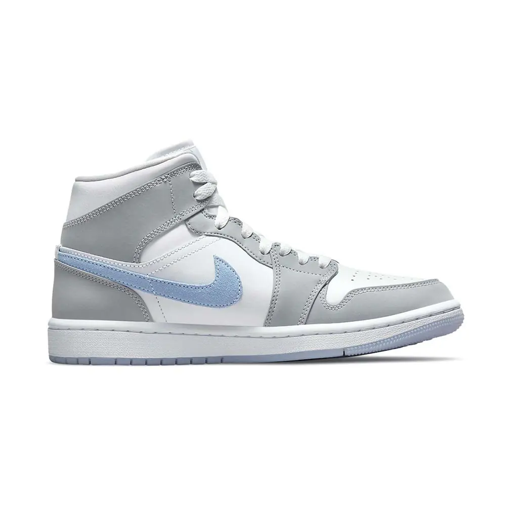 The ladies will be getting a new exclusive Air Jordan 1 Mid colorway that comes equipped with an added icy sole to keep cool during the warmer months.Dressed in a White, Wolf Grey, and Aluminum color scheme. This offering fo the mid-top Air Jordan 1 features a White leather base with Gery overlays and Jumpman branding on the tongues and insoles. Blue suede Swooshes on the sides atop a White midsole and icy outsole completes the design.