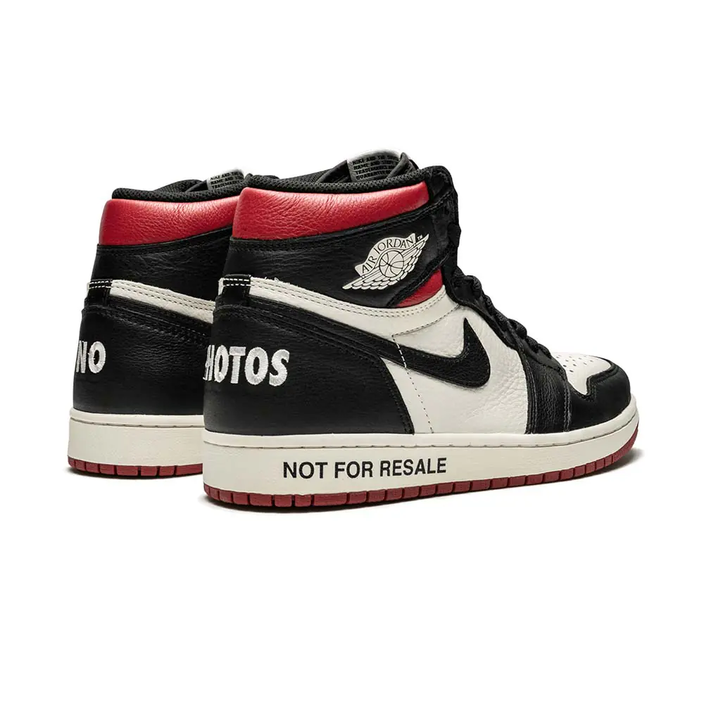 The Air Jordan 1 “Not For Resale – Red” released in 2018 as a special edition of Michael Jordan’s first signature shoe. The Jordan 1 features graphic messages across the shoe that encourage users to wear their pair. A tongue-in-cheek response to trends in sneaker culture, the shoe has text including “NOT FOR RESALE,” “NO PHOTOS,” “PLEASE CREASE,” and “WEAR ME” across the upper and midsole. Inside the Air Jordan 1, there are more messages, including “GENERAL RELEASE” and “NO L’s.” The Air Jordan 1 “Not For Resale – Red” sports a black, white, and red leather upper reminiscent of OG colorways of the legendary model.