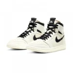 Along the indented Swoosh, for example, a black nylon dresses with a soft glimmer; adjacent, the laces, collar, and tongue branding follow suit, matching not in their texture but in color. Elsewhere, robust leathers then create the general guise of the AJ1, each panel — from the slightly extended eye stay to the thinned ankle flap — coated in a tone of either a Sail or Light Orewood Brown variety. White Wings insignia, Zoom Air text, and sockliner graphics finish atop, branding much more subtle than past iterations.