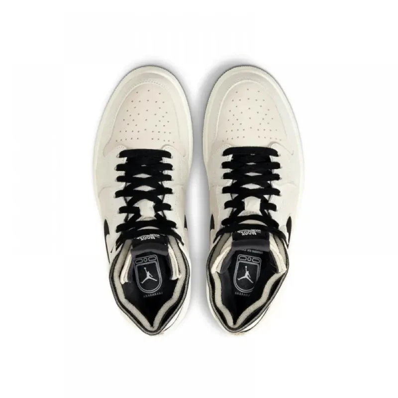 Along the indented Swoosh, for example, a black nylon dresses with a soft glimmer; adjacent, the laces, collar, and tongue branding follow suit, matching not in their texture but in color. Elsewhere, robust leathers then create the general guise of the AJ1, each panel — from the slightly extended eye stay to the thinned ankle flap — coated in a tone of either a Sail or Light Orewood Brown variety. White Wings insignia, Zoom Air text, and sockliner graphics finish atop, branding much more subtle than past iterations.