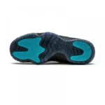 The Air Jordan 11 Retro ‘Gamma Blue’ was an all-new colorway released in December 2013. The upper combines black mesh and patent leather with Gamma Blue Jumpman branding. The design also features a black midsole, a translucent blue outsole, and varsity maize accents on the tongue and heel.