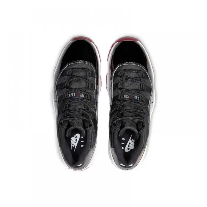 Revived in December 2019, the Nike Air Jordan 11 Retro GS ‘Bred’ harks back to the iconic colorway originating in 1996. This kid’s edition elevates the classic in black mesh paired with a distinctive patent leather mudguard and webbing eyestays. A Jumpman in Varsity Red is embroidered on the counter. Reinforced by a carbon fiber midfoot shank, the Air-encased midsole and translucent rubber outsole deliver a comfortable, stable ride.