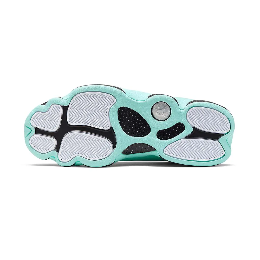 The Air Jordan 13 Retro ‘Island Green’ is a revamped take on the signature shoe that Michael Jordan wore during the 1997-98 NBA season, his final campaign with the Chicago Bulls. The Tinker Hatfield-designed silhouette was nicknamed ‘Black Cat’ and first seen in November 1997, while this version in black and light green was distributed in November 2019. Like the original, it comes with the Jumpman on the tongue, a holographic eye and an outsole designed to look like a panther paw.