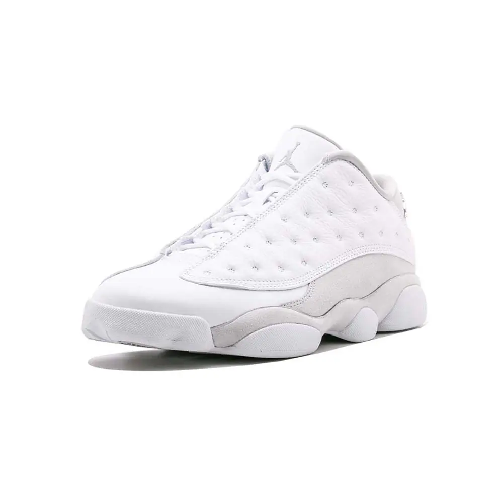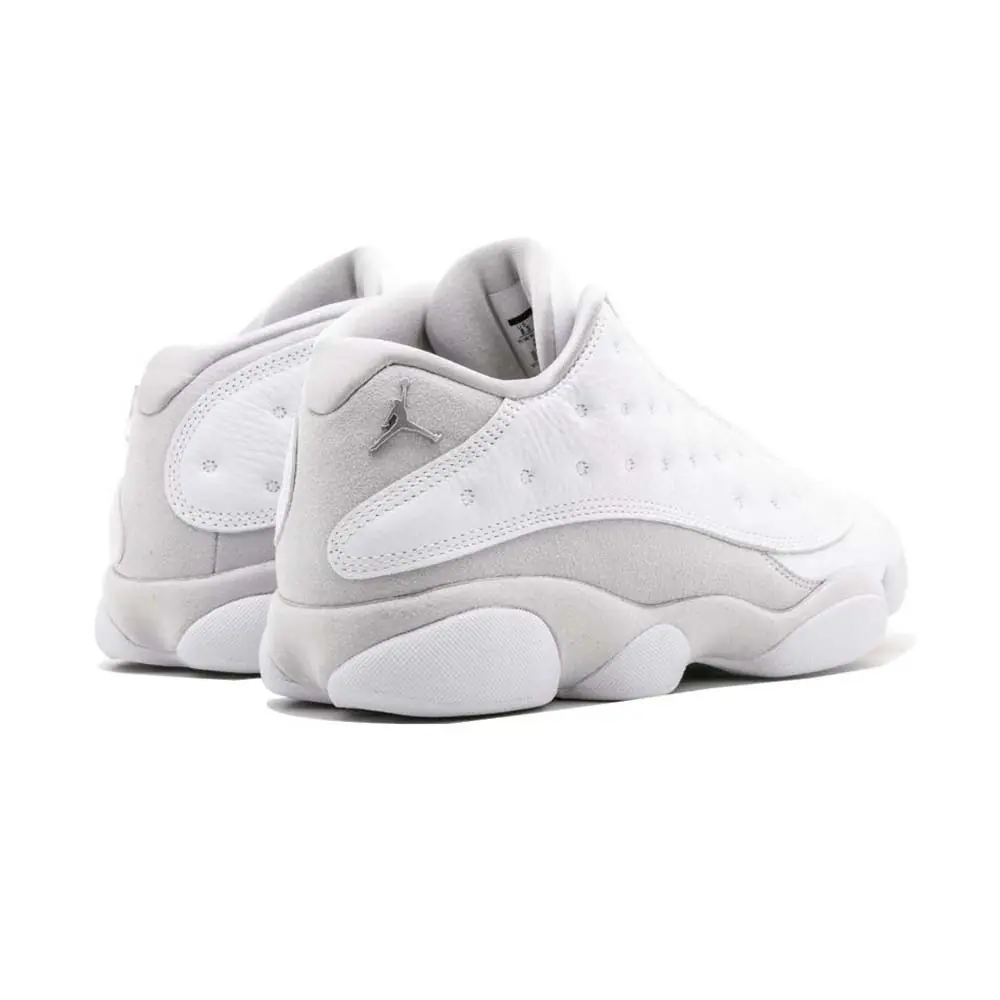An icy white shoe option can always do your collection good, especially during the summer months. Enter the Air Jordan 13 Retro Low in the Pure Platinum colorway. As the nickname infers, we see the classic silhouette sport a pristine look. Credit that to an upper constructed with premium white tumbled leather on the toe and dimpled side panel. The mudguard features a clean suede in Pure Platinum that gives the design a simple, yet luxurious feel. The inner lining features the same colorway. Additional Jumpman branding appears on the heel in Metallic Silver to complete the slick Air Jordan design.