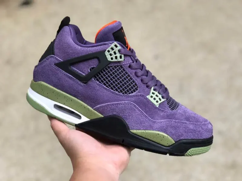 The Air Jordan 4 Retro Canyon Purple W was inspired by Tinker Hatfield’s 1989 design. This shoe replaces the traditional leather or nubuck build.