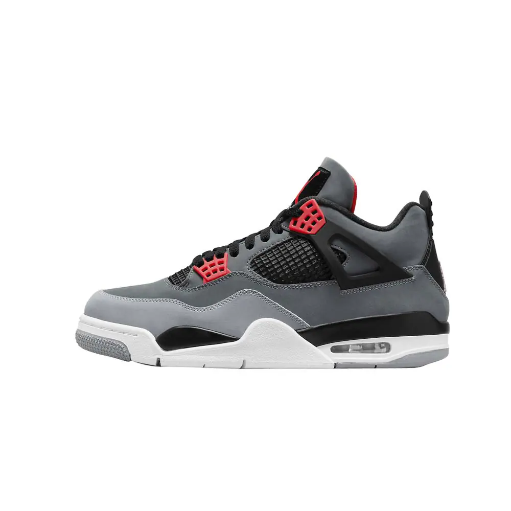 The Air Jordan 4 “Infrared” updates the iconic model with a color scheme that combines a natural base with vibrant accents.Dressed in a mix of Dark Grey, Infrared 23, Black, and Cement Grey. This Air Jordan 4 will have similarities to 2013’s “Green Glow” release featuring varying shades of Grey throughout its upper constructed in durable nubuck. Black lands on the netting, plastic wings, laces and molded heel tab highlighted with Infrared contrasting accents. A White midsole atop a signature Grey rubber outsole completes the design.
