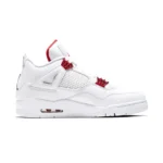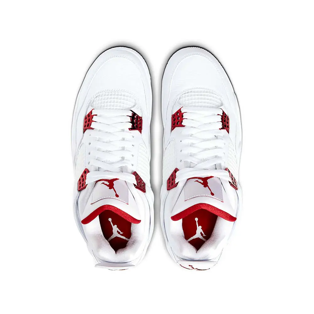 Launching as part of a four-piece Metallic Pack, the Air Jordan 4 Retro ‘Red Metallic’ treats the classic silhouette to a simple two-tone color scheme. The upper is constructed from white leather, complete with standard details that include quarter-panel netting and a visible Air sole unit at the heel. Contrasting pops of University Red appear on the molded eyelets, interior tongue and Jumpman branding hits at the heel and woven tongue tag.