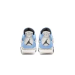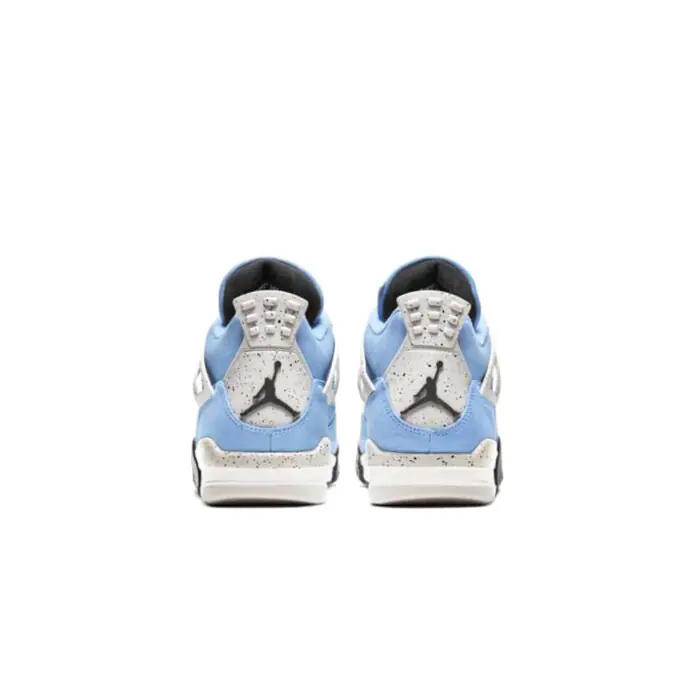 The Air Jordan 4 Retro ‘University Blue’ updates the classic silhouette with a suede upper in a familiar hue inspired by Michael Jordan’s UNC alma mater. The bright blue palette is contrasted by a speckled grey finish on the sneaker’s supportive wings and back heel, featuring a raised Jumpman icon in black. Secondary Jumpman branding adorns the woven tongue tag, designed to mimic a jock tag that typically appears on the bottom hem of Jordan jerseys.