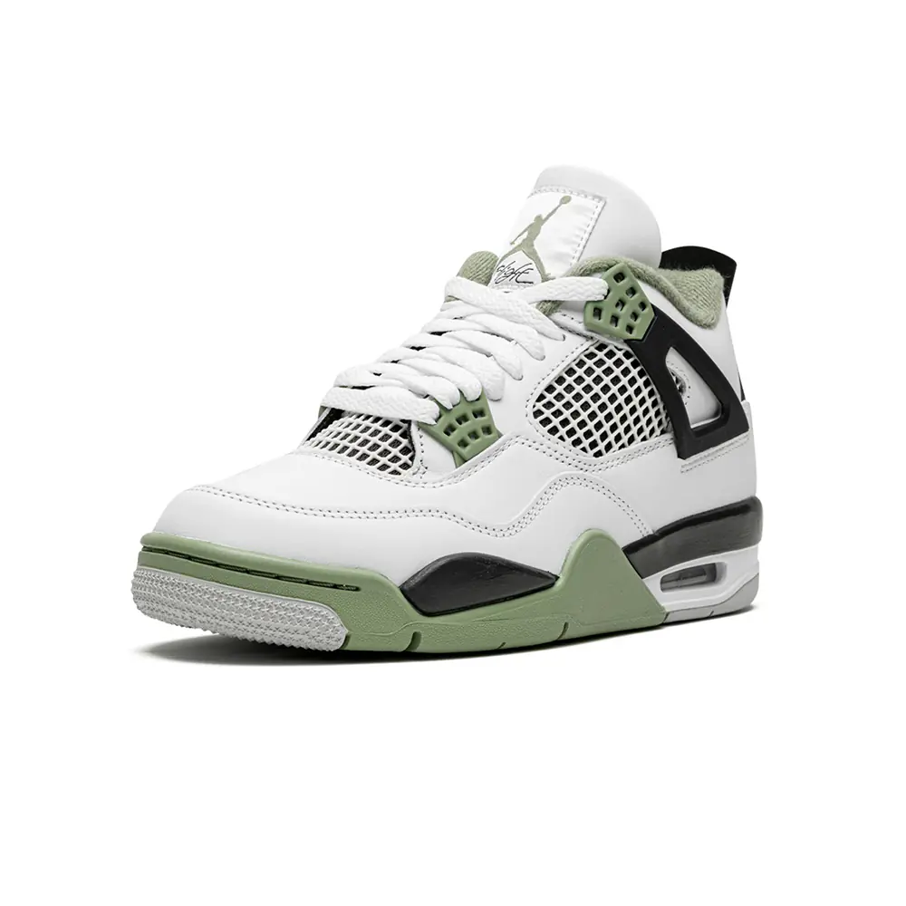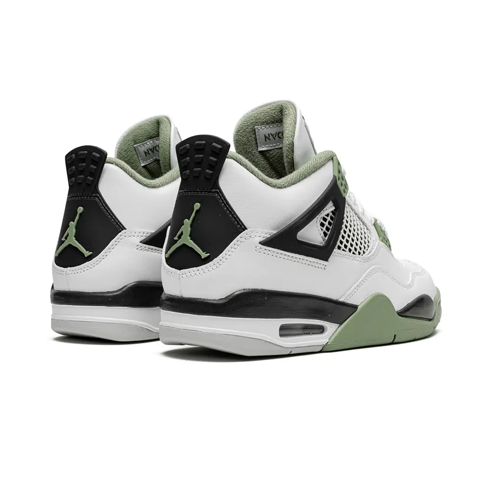 The Women’s Air Jordan 4 “Oil Green” is a women’s-exclusive colorway of the classic sneaker that adds to its impressive collection of releases. In the “Oil Green” colorway, this Jordan 4 is complete with a white leather construction with tonal netting on the tongue and mid-panel. Seafoam-colored eyelets are found on the sides of the shoe and additional Seafoam accenting appears on the Jumpman on the tongue and on the heel. The minty-green hue is also on the interior collar and on the rubber overlay on the toe and forefoot on the outsole. A visible Air bubble appears in the heel of the midsole. Release date: February 9, 2023