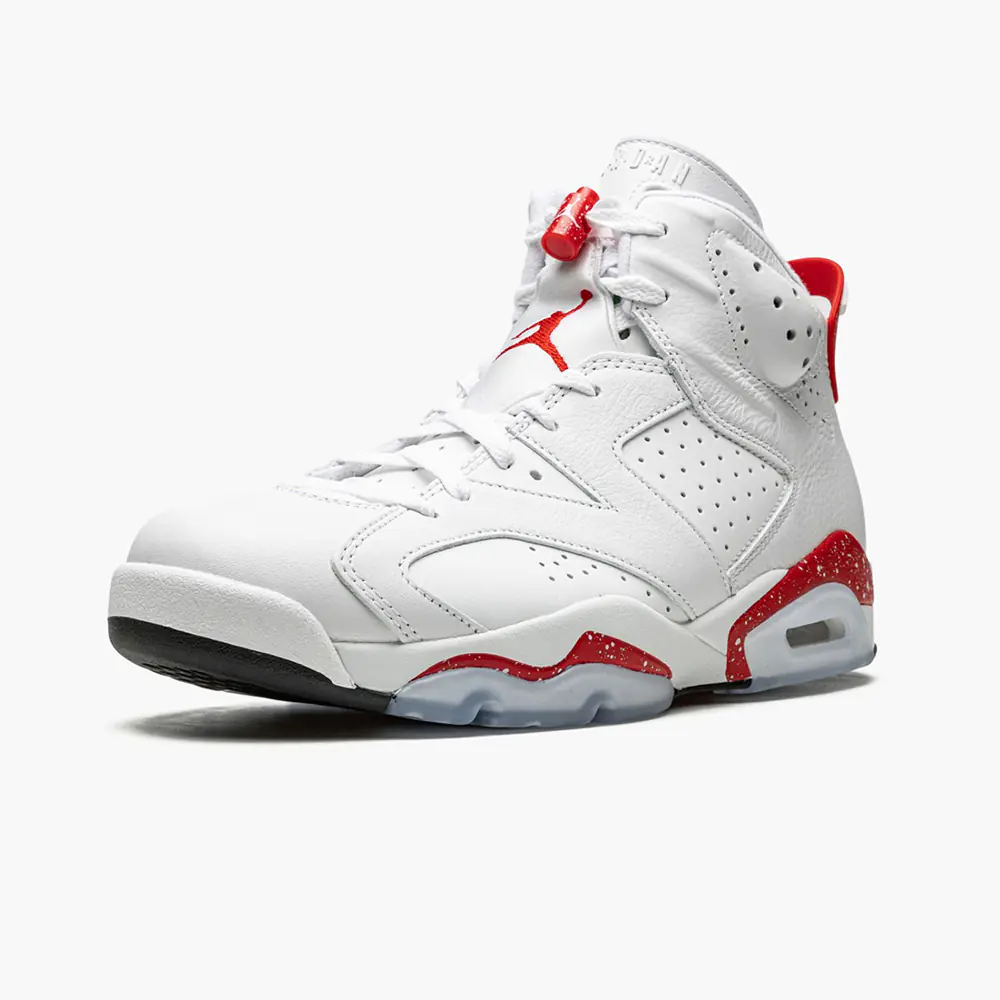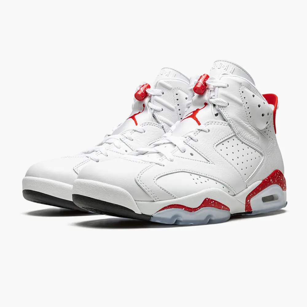 The Air Jordan 6 “Red Oreo” is a colorway of Michael Jordan’s sixth signature shoe that unofficially nods to the popular snack of the same nickname. Jordan Brand’s “Oreo” color story continues on the Jordan 6 “Red Oreo,” which was released in June 2022 as part of its Summer 2022 release cycle. The “Red Oreo,” specifically, seemingly shows love to the Red Velvet Oreo flavor, sans any official Oreo branding or likeliness. The upper features a white leather construction that gives way to contrasting University Red accents. The fiery shade of red is found on the midsole and spoiler, both with white speckle detailing, and on the embroidered Jumpman on the lace shroud and lace toggle. A tonal Jumpman logo is stitched onto the heel. Release date: June 4, 2022