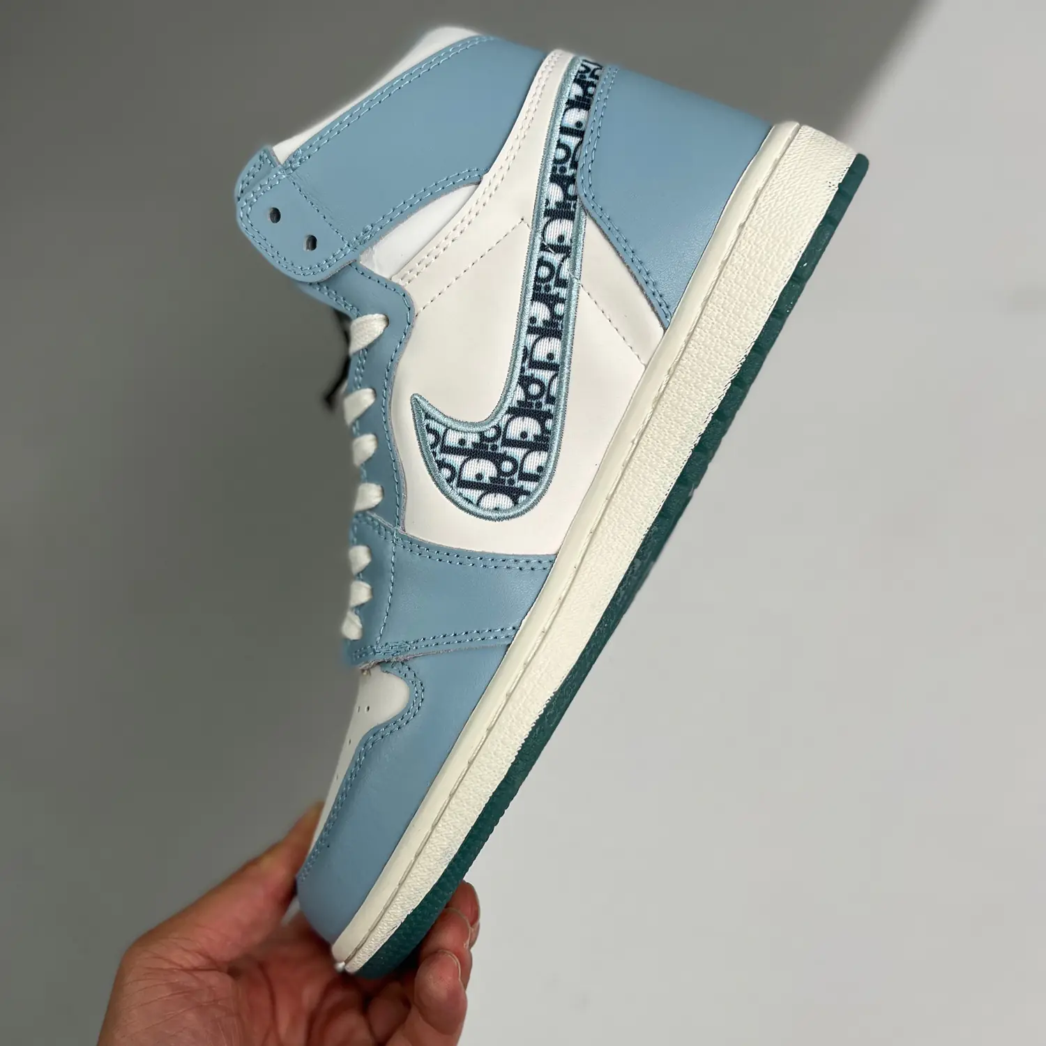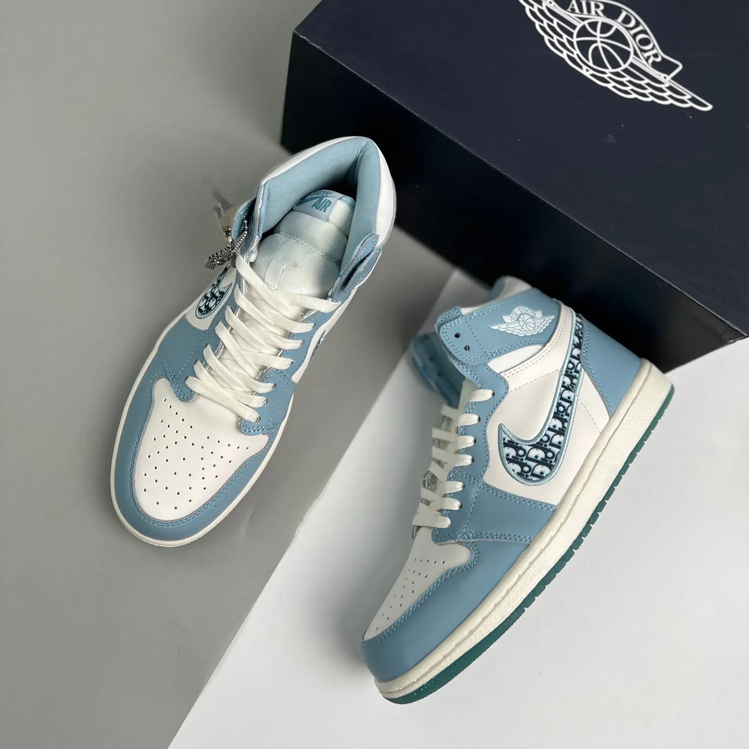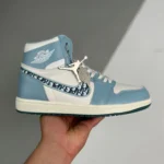 Part of a collection between the fashion house and Jordan Brand, the Dior x Air Jordan 1 High released in April 2020. The shoe’s Italian leather upper appears in a mix of white and grey, with a Dior Oblique jacquard Swoosh contrasting the side wall. The tongue tag and ‘Wings’ logo sport co-branding, with further branding revealed by the icy translucent outsole.