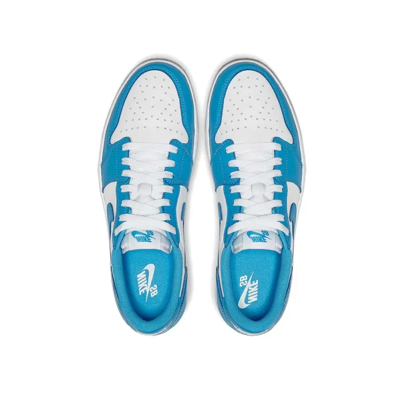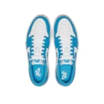 The Eric Koston x Air Jordan 1 Low SB ‘Powder Blue’ represents a silhouette that Koston missed out on as a kid, but got to help design and eventually wear as a sponsored Nike SB athlete. The low-cut shoe was first seen on the foot of Koston and released in August 2019. It has a white-based leather upper with Dark Powder Blue detailing, Nike Swoosh and overlays. Finishing the style is the classic Wings logo on the heel, and Koston’s signature on the inside tongue label.