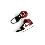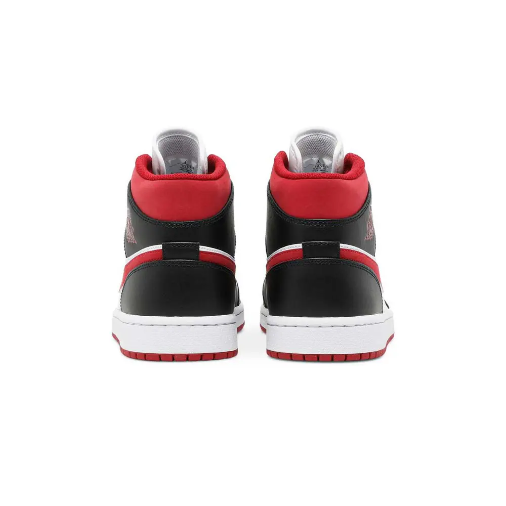 The Air Jordan 1 Mid Gym Red Black White delivers a fresh take on the classic Chicago Bulls team colors, composed entirely of black and white leather overlays. A Gym Red Swoosh appears on each side of the sneaker with a matching embossed Gym Red Wings logo on the ankle. Lastly, a black and Gym Red Jumpman tag is stitched on the tongue.