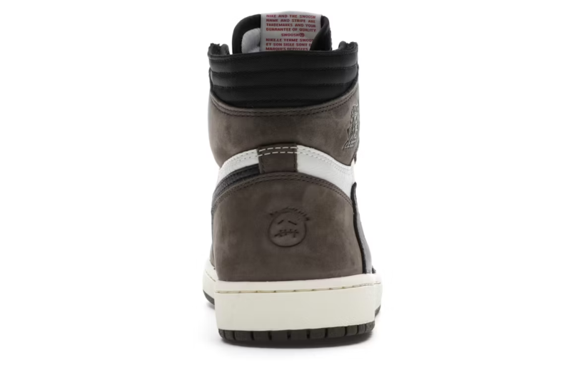 The Air Jordan 1 Travis Scott features a white leather upper with Mocha suede overlays and black leather reversed Swooshes. Hits of red on the tongue slightly contrast the design’s earth tones. On the heel, a debossed Cactus Jack logo adds a custom feel. From there, a yellowed midsole and matching Mocha outsole complete the design.