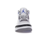 The Air Jordan 3 Racer Blue features a white tumbled leather upper with grey perforated leather eyestays and Cement overlays. From there, hits of Racer Blue on the Jumpman logos and midsole add vibrance to the classic model.