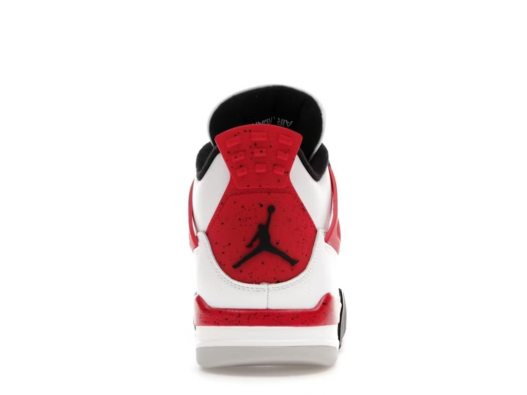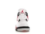 Constructed with white premium leather uppers, a mix of fire red and black is applied throughout, while the iconic mesh detailing and Jumpman logo retain their traditional placements. Sat atop a black, white, and fire red midsole, the style stays true to its roots, showcasing why the Jordan 4 model remains one of the most iconic Jordan models of all time.