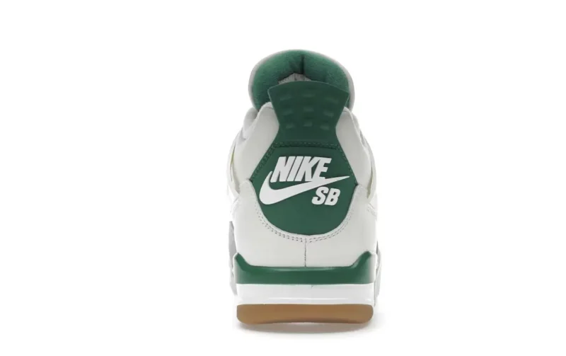 The Jordan 4 Retro SB Pine Green used a white leather upper with a Neutral Grey suede mudguard. The limited edition sneakers sit on top of a white and Pine Green midsole which is highlighted by a red air unit. Nike used a gum outsole to help with increased grip while skateboarding.