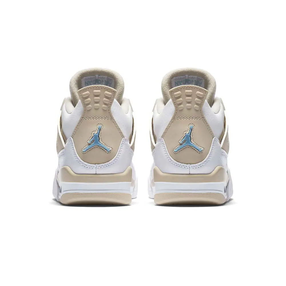 The first retro of the model, this women’s-exclusive colorway is brought to a grade-school size. The ‘Linen’ features Light Sand throughout the primarily white colorway, most notably on the heel and lace applications. The partially encapsulated Air in the heel is also highlighted by surrounding Light Sand. Color is provided by the Jumpman branding, which appears in Border Blue.