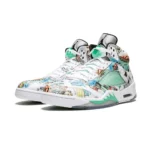 The Air Jordan 5 “Wings” is a special edition of the legendary silhouette featuring a graphic upper inspired by illustrations done by students at Little Black Pearl, which is a nonprofit cultural arts center serving Chicago’s youth. The special details of the attention-garnering Air Jordan 5 don’t stop at the all-over graphic print. The Jordan 5’s signature details are also modified, with the lace toggle and mesh side panels altered into wing shapes. Both “winged” details also glow in the dark, while the model’s traditional reflective tongue adds the final bit of flash. The Air Jordan 5 “Wings” promotes Jordan Brand’s Wings program which helps youth around the world unlock their full potential through education.