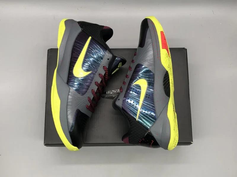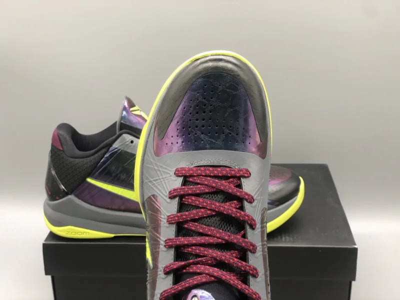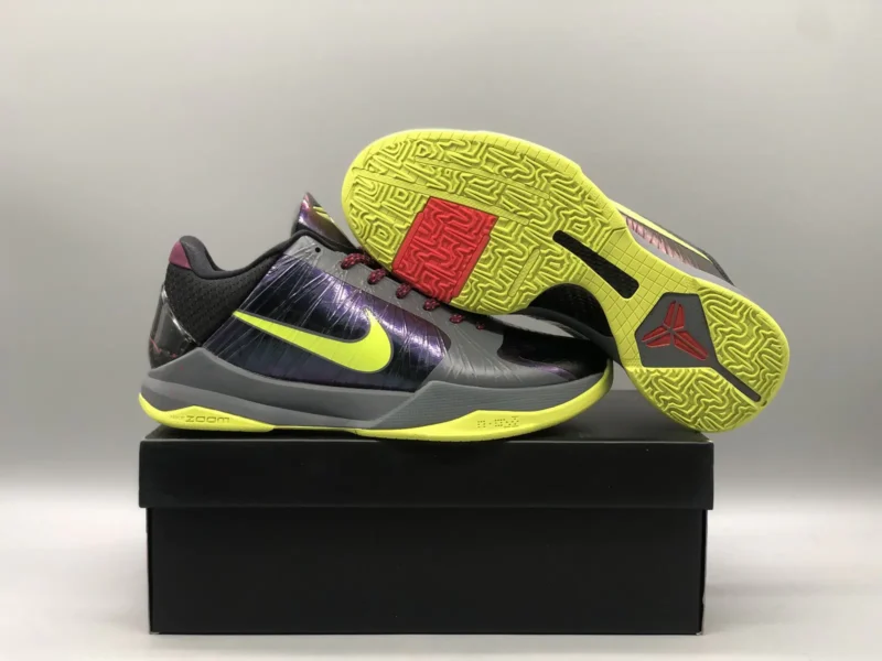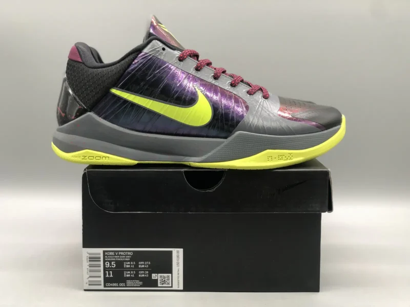 Kobe 5 Protro 2K Gamer ExclusiveBrings back a beloved colorway initially released in 2010 as part of the Nike Basketball Christmas Day Collection. Updated with contemporary Zoom Air cushioning technology, the sneaker features the eye-catching aesthetic of the original, highlighted by a vibrant green finish on the upper. Polyurethane ‘islands’ cover the synthetic upper, mimicking the texture of snakeskin while also providing added durability.