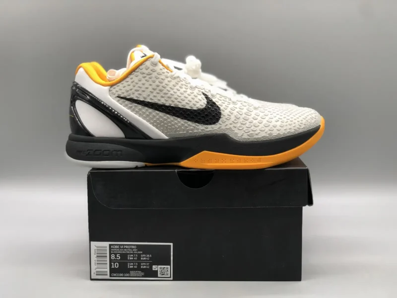 Kobe 6 Protro Playoff Pack White Del SolBrings back a beloved colorway initially released in 2010 as part of the Nike Basketball Christmas Day Collection. Updated with contemporary Zoom Air cushioning technology, the sneaker features the eye-catching aesthetic of the original, highlighted by a vibrant green finish on the upper. Polyurethane ‘islands’ cover the synthetic upper, mimicking the texture of snakeskin while also providing added durability.