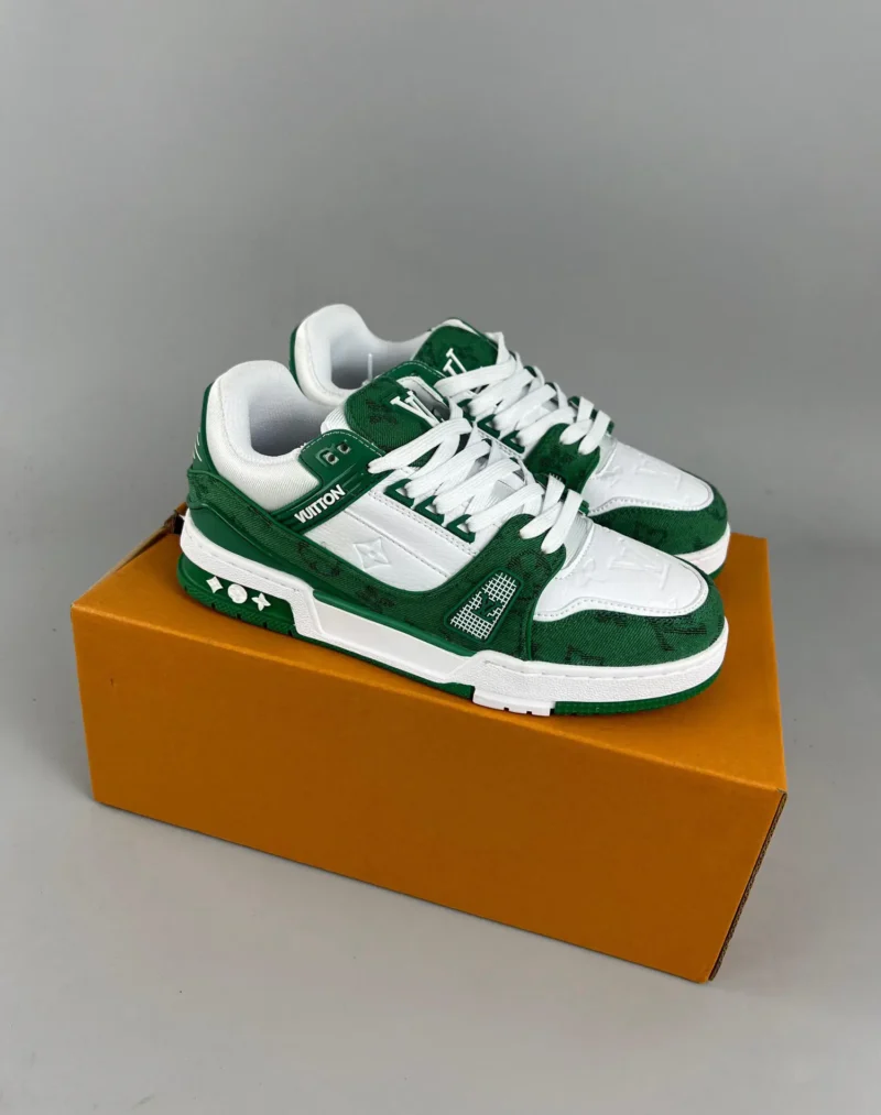 Be the first to review “LOUIS VUITTON Green & White Monogram Canvas ‘LV Trainer’ Sneakers”