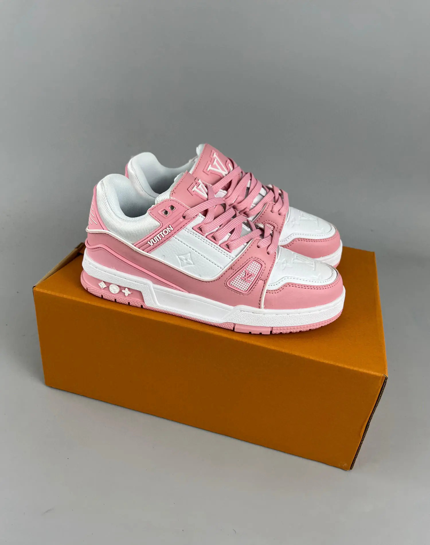 Be the first to review “LOUIS VUITTON Pink & White Monogram Canvas ‘LV Trainer’ Sneakers”