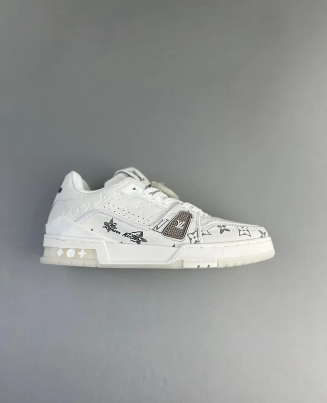 In this version, LV Trainer sports shoes possess Monogram-patterned leather material, harmoniously combined with embossed calf leather with Mini Monogram pattern. The creation of designer Virgil Abloh, this iconic shoe is inspired by classic basketball shoes. The upper part of the shoe has an elaborate and outstanding design with many unique details and the signature Louis Vuitton name. Each pair of shoes is sewn by hand for 7 hours.
