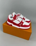 Be the first to review “LOUIS VUITTON Red & White Monogram Canvas ‘LV Trainer’ Sneakers”
