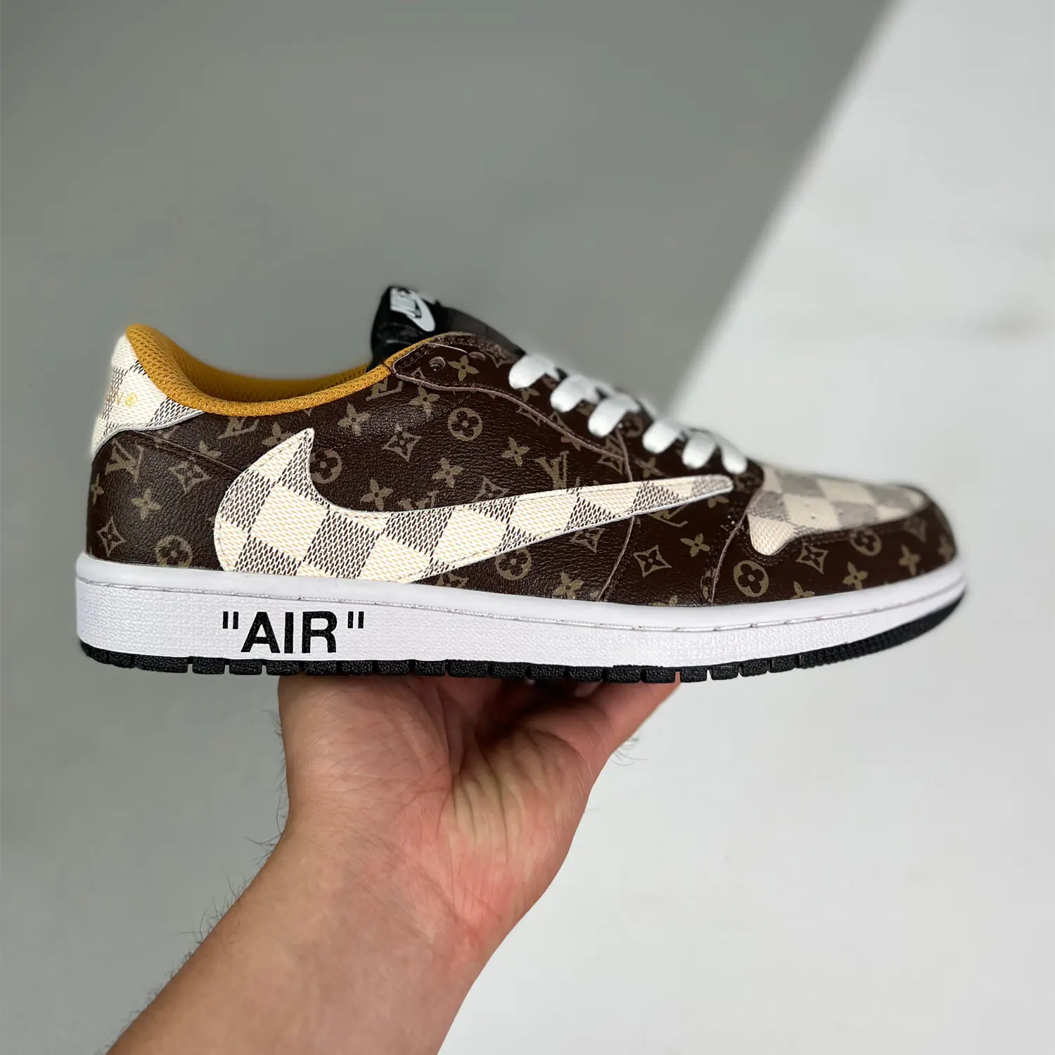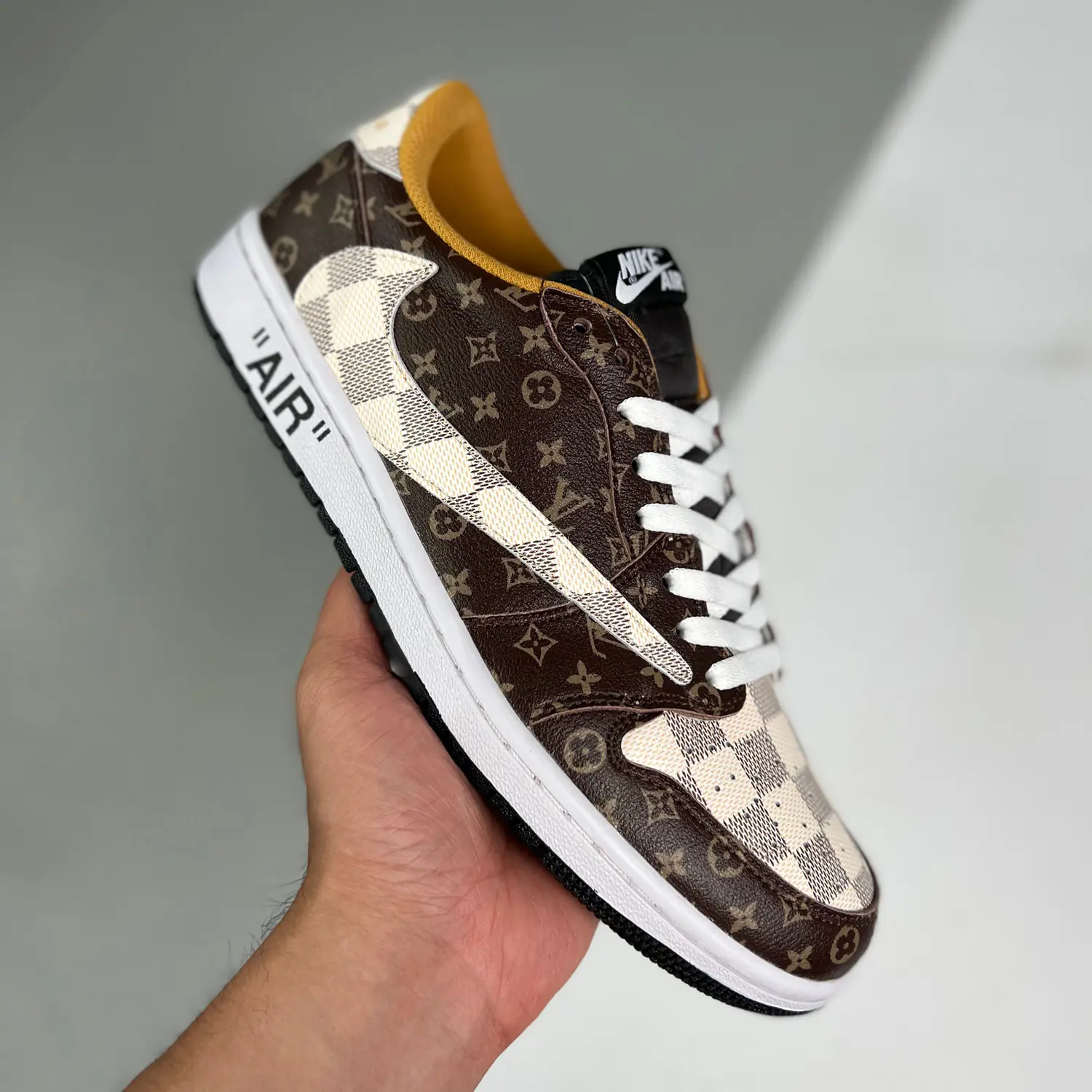 Travis Scott x Air Jordan 1 Low x Lv will level up your streetwear outfit due to its elegant prints and iconic colors.