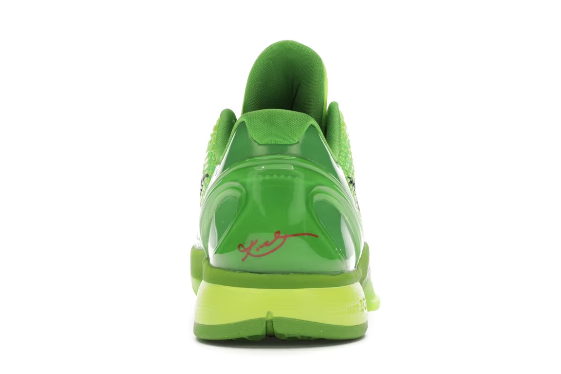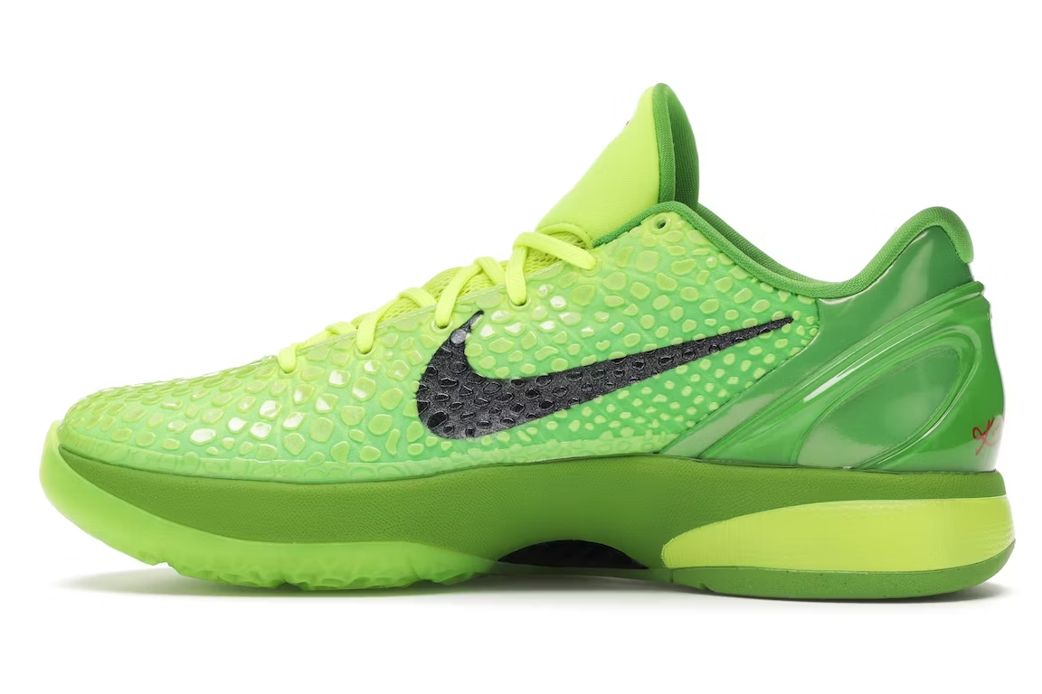 Nike opened a new chapter at the end of 2020 and refreshed the Kobe 6 design with the Nike Kobe 6 Protro Grinch. The Kobe 6 Grinch originally debuted in 2010 when Kobe Bryant’s Los Angeles Lakers faced LeBron James’ Miami Heat in a legendary match up on Christmas Day. This is the first Kobe 6 to receive the Kobe Protro treatment, a design process that takes classic Kobe designs and updates them with modern tech for improved performance.
