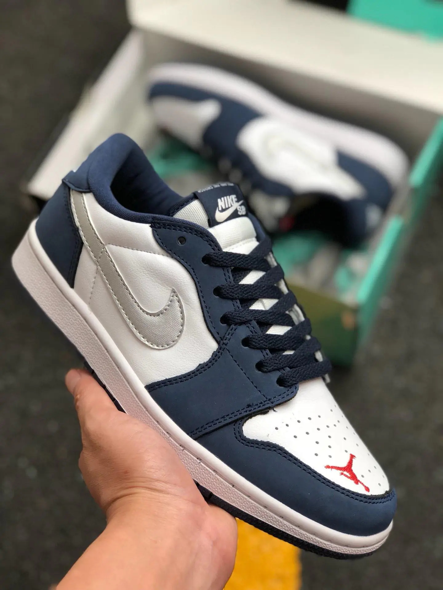 Nike SB x Air Jordan 1 Low Midnight Navy/White-Ember Glow-Metallic Silver