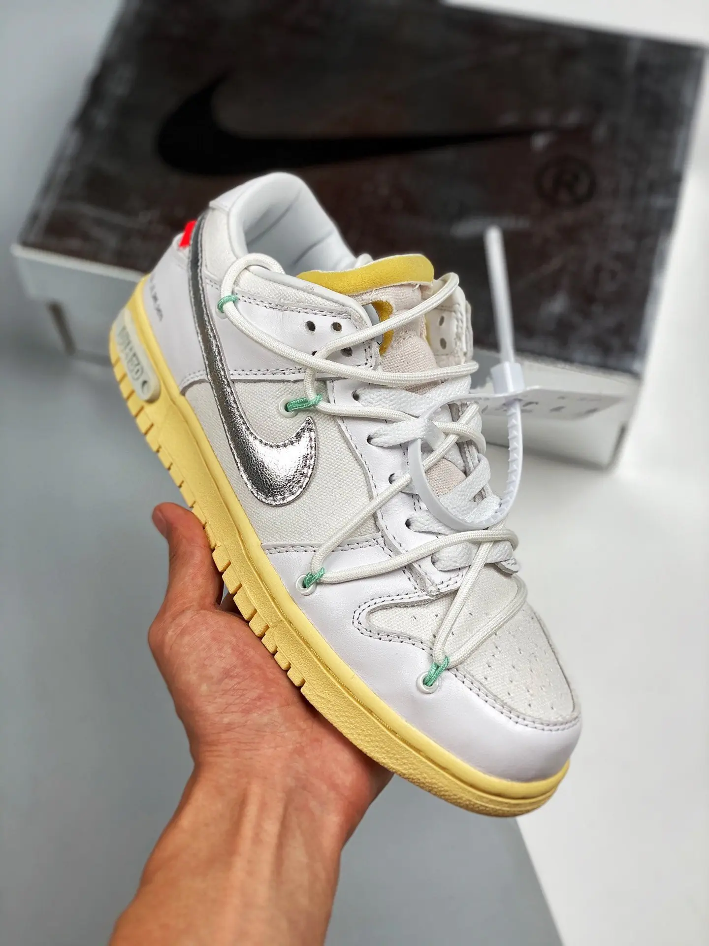 Off-White x Nike Dunk Low ” 01 of 50″ White Silver Gum