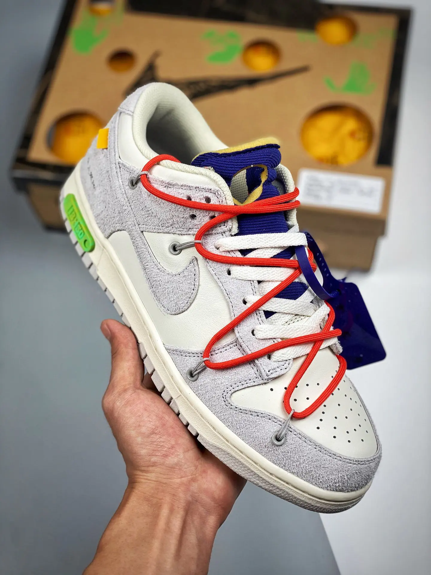 Off-White x Nike Dunk Low ” 13 of 50″ Sail Grey Habanero Red