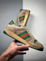 The Gucci Screener sneakers may boast an anything-but-new profile, but that doesn’t take away from their distinctive, timelessly cool appeal. Formed upon a comfortable rubber sole, they’re reminiscent of ’70s-era sport influences, note how the smooth panelling forms the perfect backdrop for the House’s signature grosgrain Web stripe and GG lamé detailing.