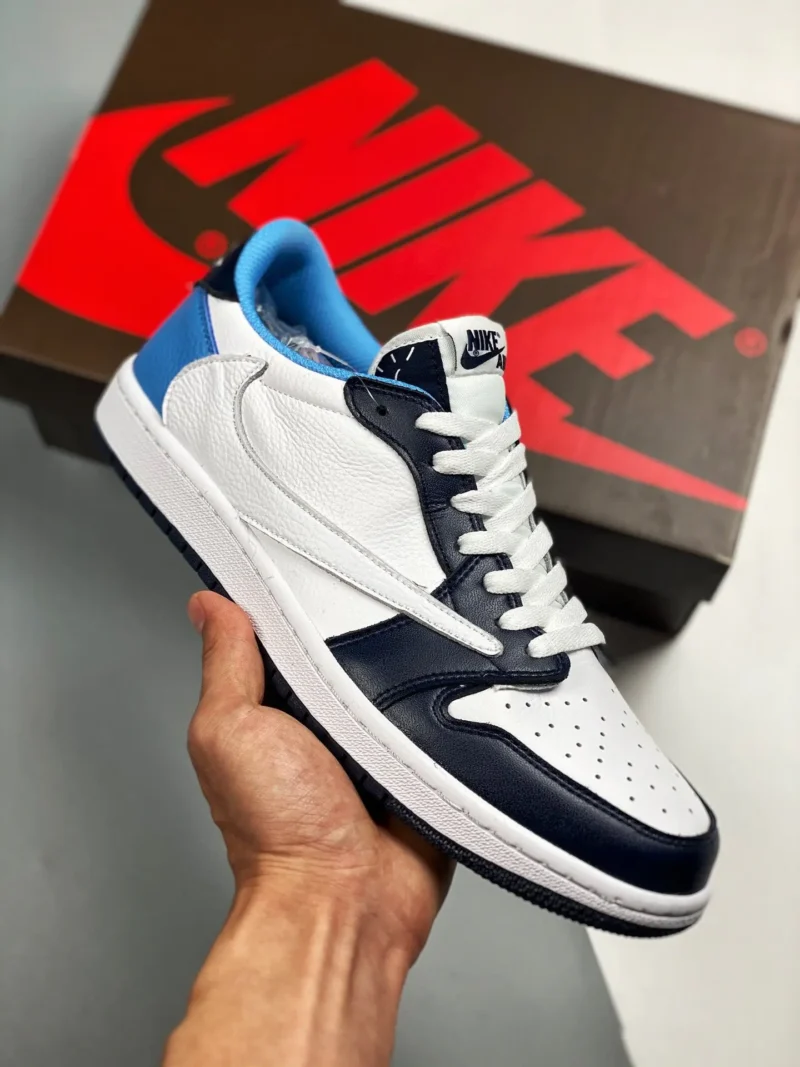 Travis Scott x Air Jordan 1 Low ” UNC” White Navy Blue