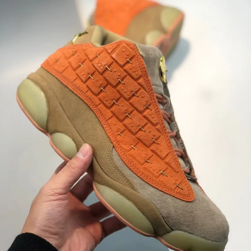 The Trophy Room x Air Jordan 5 Retro sneaker draws inspiration from the real-life trophy room in the Jordan family home. This ‘Ice Blue’ rendition is replete with a rich suede upper, hits of University Red, Sail and a metallic gold lace lock. Each lateral heel is embroidered with metallic gold numerals—’23’ and ‘5’—the jersey numbers worn by MJ and his son, Marcus. Below, the sneaker’s translucent rubber sole displays a wood-grain motif to reference the court-style flooring in MJ’s trophy room.