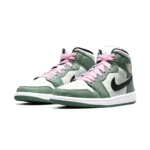 The women’s Air Jordan 1 Mid SE ‘Dutch Green’ softens the classic silhouette with a spring-ready palette made up of contrasting pastel hues. Varying pale green shades are executed on the leather upper, accented with a black Swoosh and a pink Wings logo on the lateral collar flap. Matching pink hits land on the sneaker’s laces and woven tongue tag, featuring standard Jumpman branding. The mid-top is mounted on a rubber cupsole with encapsulated Nike Air cushioning in the heel.