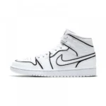 The Women’s Air Jordan 1 Mid “Iridescent Outline” is a women’s-exclusive edition of the mid-top Jordan 1 with a unique “outlined” construction. The upper is composed of a white leather base and features detailing in the form of a perforated toe, embossed tonal Wings logo on the collar and Swoosh on the mid-panel. Iridescent trimming is seen around each panel in a reflective material that changes color when hit with light. The rest of the women’s-exclusive Air Jordan 1 Mid, including the tongue, midsole, and outsole, is finished off in crisp white.