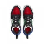 Looking closer this mid-top Air Jordan 1 comes with a ‘Bred’ toe box, stitched Swoosh logos on the panels, a large heel loop pull tab along with the number 23. Constructed with a mixture of leather and patent leather, White runs across the midsole while Black covers the outsole to finish the look.